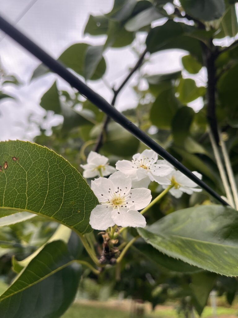 涼しくなる秋、梨の木が春と勘違いして花を咲かせることがあります。